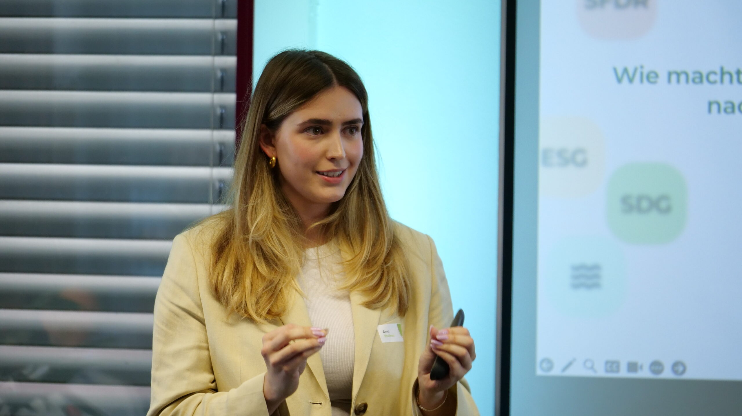 Verdeutlichte anhand von Social Bonds, Goldfonds und nachhaltigen Firmenkrediten, welche Möglichkeiten heute bereits bestehen, um nachhaltig anzulegen.